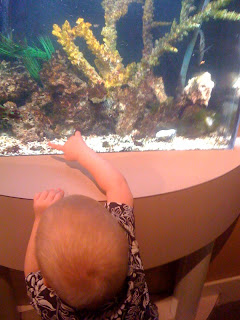 He gets so excited, he has to point to all the fish and yell, "fishy!". ...we're working on 'inside voices', but it's not sinking in yet.